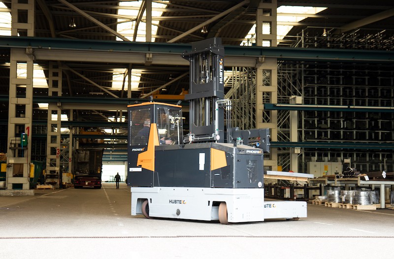 Die meisten Seitenstapler sind 2-Wege-Stapler. Für Einsätze auf großzügigen Lagerplätzen reicht dies vollkommen aus. Wer allerdings bei der Lagerung von sperrigen oder langen Gütern Platz sparen, bzw. seine Lagerkapazitäten ohne Vergrößerung der Grundfläche erhöhen will, kommt immer wieder auf die HUBTEX-Seitenstapler mit Mehrwegelenkung zurück: Bei Lagerneuplanungen sind durch den Einsatz der multidirektional fahrenden Stapler Verdoppelungen der Lagerkapazitäten realisierbar. Geringere Gangbreiten und schmalere Wege machen es möglich. Hinzu kommt ein nicht zu unterschätzender Zeitgewinn: Der PhoeniX von HUBTEX kann durch das Mehrwege-Lenksystem HX fließend von der Längs- in die Querfahrt wechseln und fährt so in einem Zug vom Abholplatz zum Lagerort und zurück.